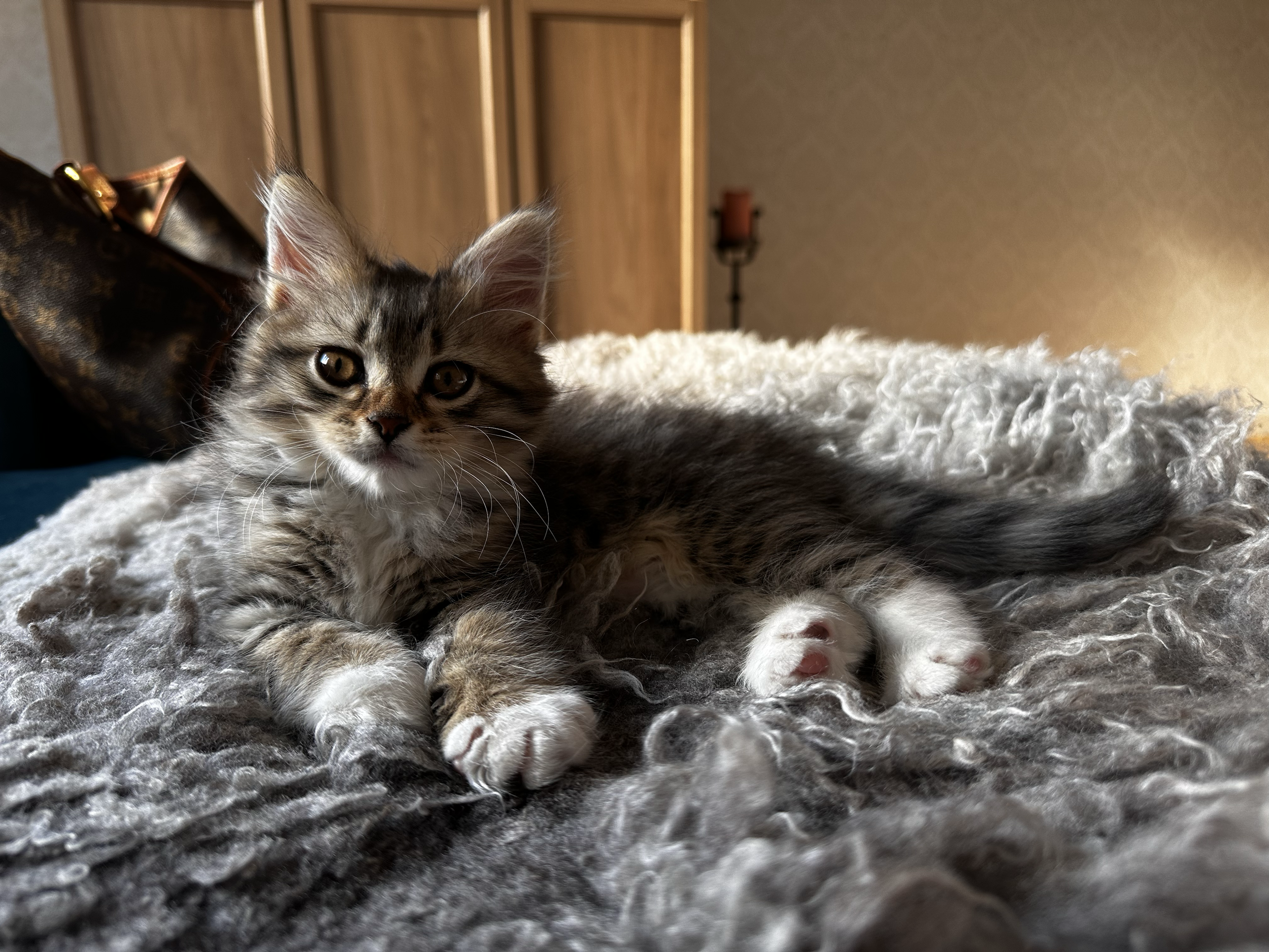 Pappa till kattungarna är SE*FurMountains Ossian, en kraftig, mycket stilig och lugn sibirisk herre av färgen SIB ns 03 24, svartsilverspotted-bicolour.