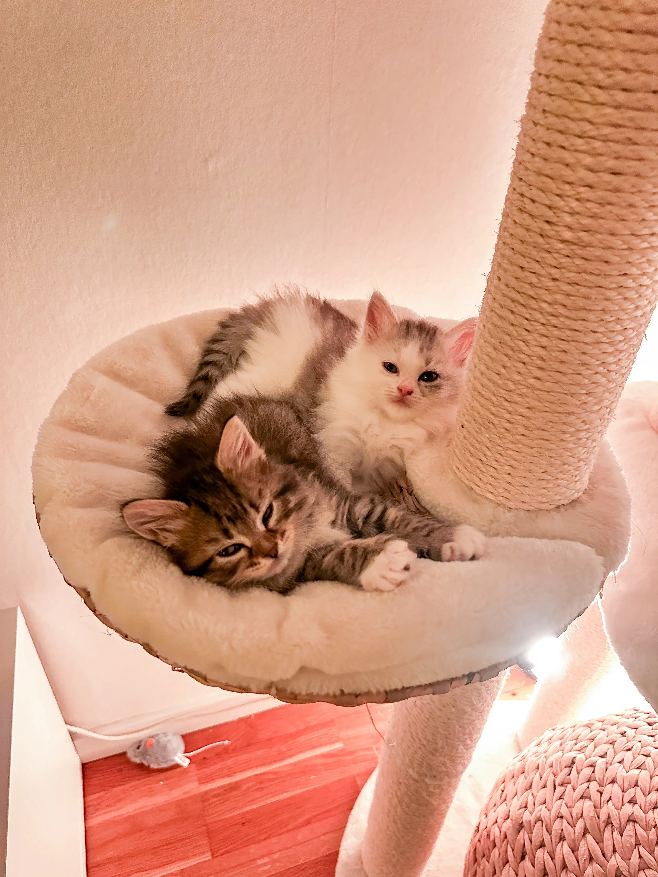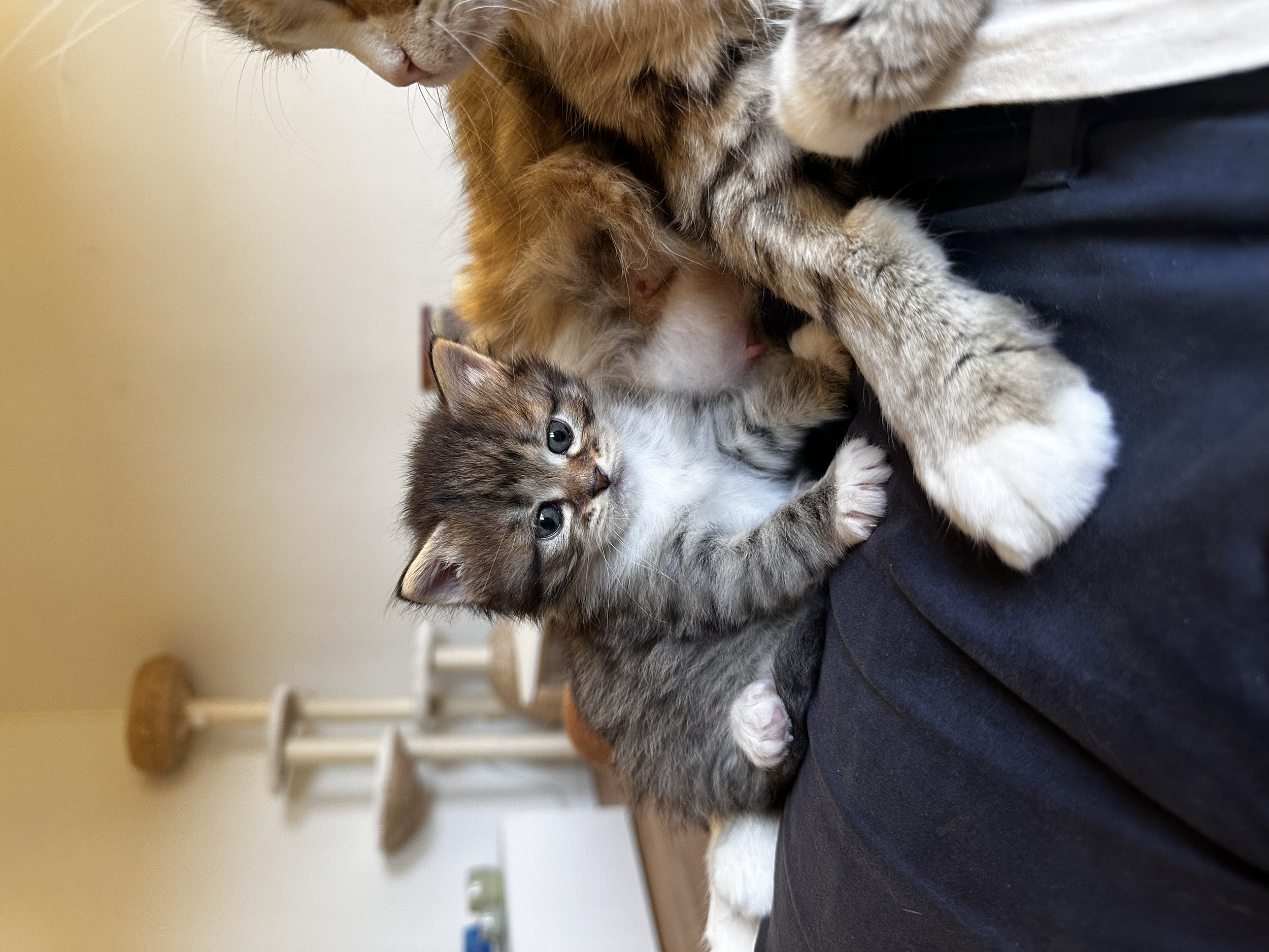 Torvi är en ordentlig kelgris, men älskar allt som står framför henne. Oavsett vilka tokigheter hon utsätts för så hänger hon alltid med. Bada? Inga problem. Hänga upp och ned? Inga problem. Sova i soffan framför en film? Absolut! Sitt lugn till trots, så är hon aldrig sen på att dra igång sin syster på ordentliga bus hemma - morgon som kväll. Och klättra i det höga klösträdet, det är minsann det roligaste som finns